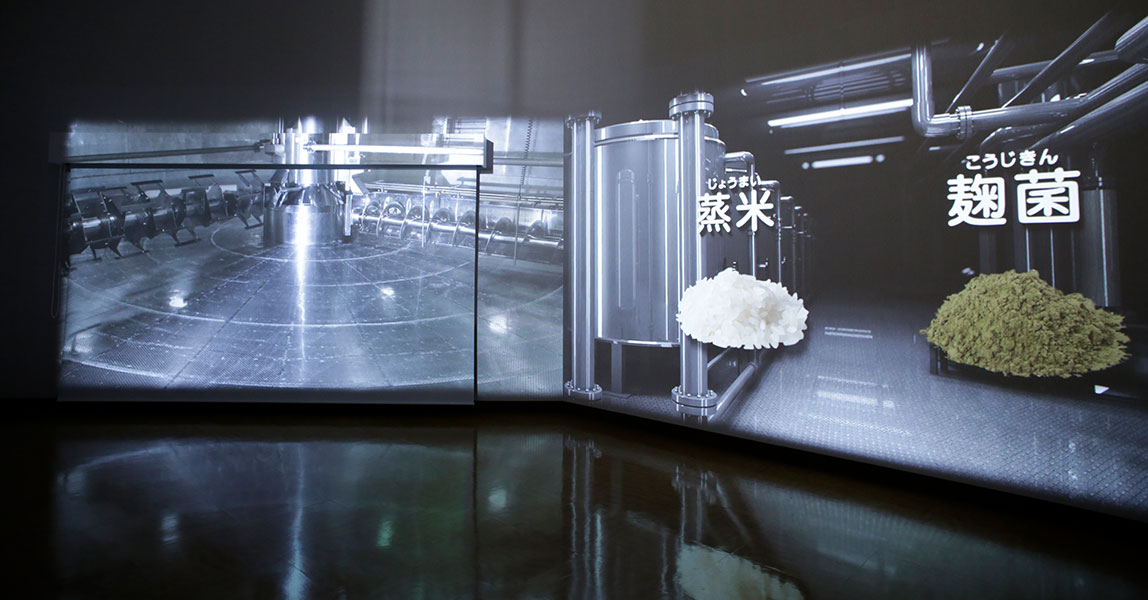 みその基礎知識を学んだ後は、隣接する伊那工場の見学通路へと移動します。工場ではどのようにして、みそが生産され、出荷されているのかを映像を使ってご案内いたします。