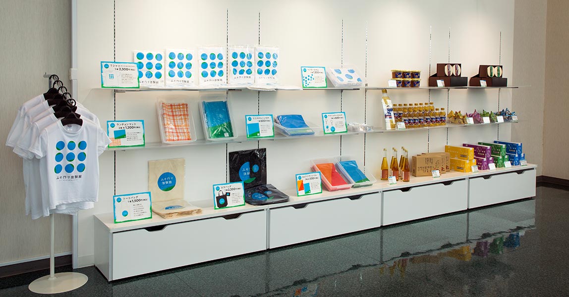 ハナマルキの商品に加え、みそ作り体験館オリジナルグッズも販売中です。みそ作り体験の思い出に!